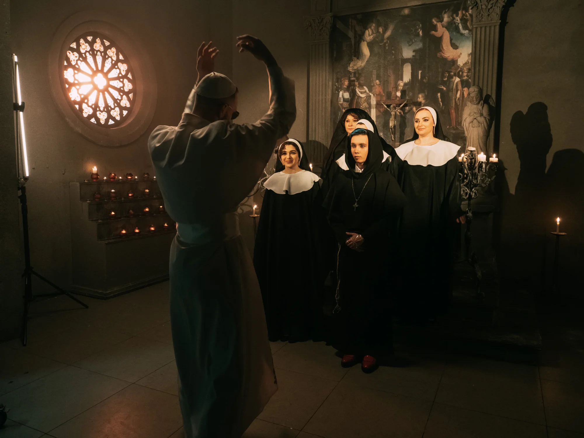 Невинный образ монашеской жизни, непорочности и безгрешности под блаженную музыку и слова hallelujah. Но не обманывайся, друг: идиллия обманчива. У Папы сегодня выходной - а это значит, настало время шагнуть в мир скрытых желаний. Готовься к провокационному шоу, где хрупкая грань между святостью и грехом исчезает под ритмы Kanye West.